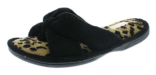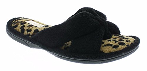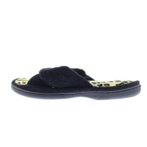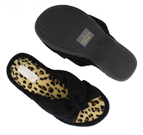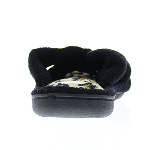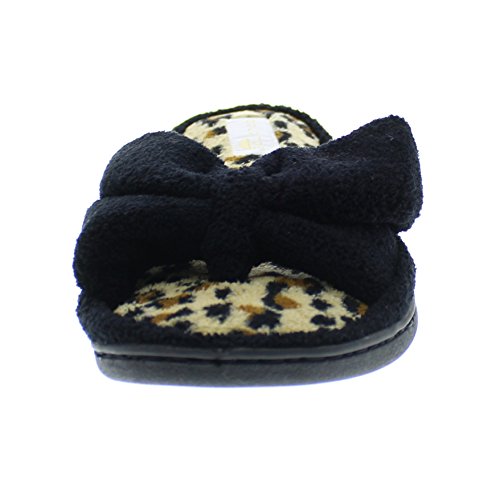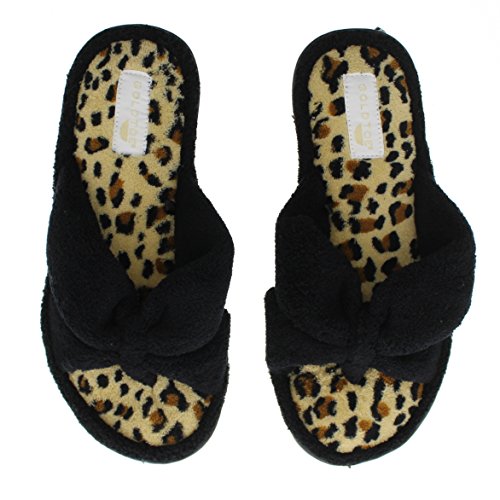 Gold Toe Women's Marcy Leopard Memory Foam Microterry Fleece Spa Thong Plush Slip On Slipper Black L 9 US
