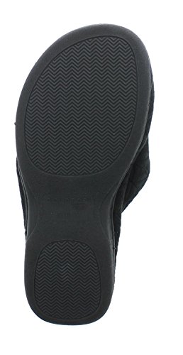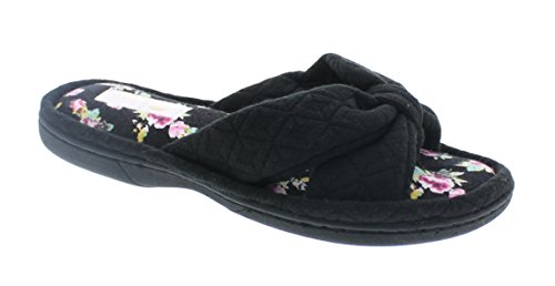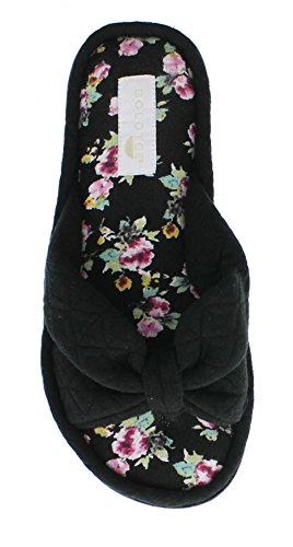 Gold Toe Women's Darcy Memory Foam Microterry Fleece Spa Thong Plush Slip On Slipper Black Floral M 8 US