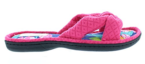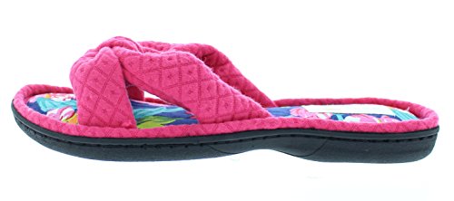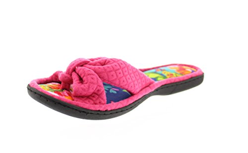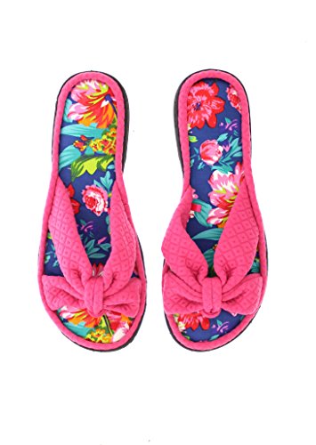 Gold Toe Women's Memory Foam Open Toe Scuff Spa Bath House Slippers, Plush Bow Slip On Summer Flip Flops (L 9, Fuchsia Floral F)
