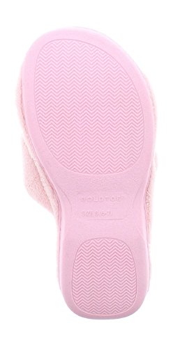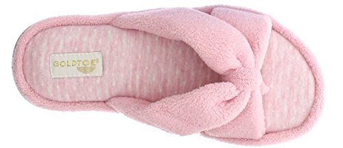 Gold Toe Women's Darcy Memory Foam Microterry Fleece Spa Thong Plush Slip On Slipper Light Pink Polka Dot XL 10-11 US