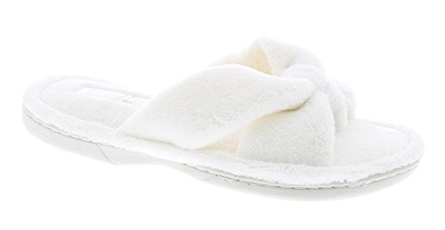 Gold Toe Women's Darcy Memory Foam Microterry Fleece Spa Thong Plush Slip On Slipper Ivory M 8 US