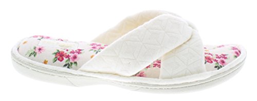 Gold Toe Women's Darcy Memory Foam Microterry Fleece Spa Thong Plush Slip On Slipper Ivory Floral XL 10-11 US