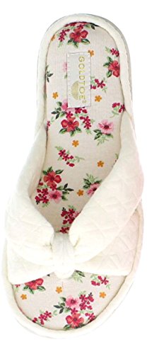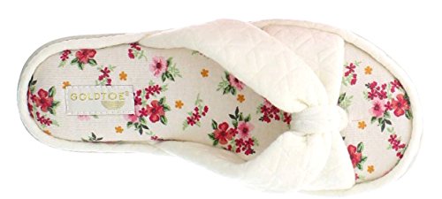 Gold Toe Women's Darcy Memory Foam Microterry Fleece Spa Thong Plush Slip On Slipper Ivory Floral L 9 US