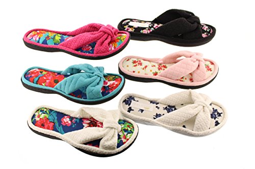 Gold Toe Women's Memory Foam Open Toe Scuff Spa Bath House Slippers, Plush Bow Slip On Summer Flip Flops (S 6-7, Fuchsia Floral F)