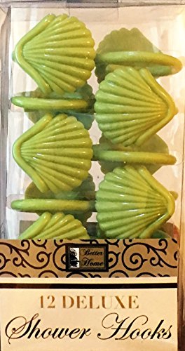 Better Home 12 Deluxe Shower Hooks Shell Shaped Design Bath Decoration Shower Curtain Rings (Light Green)