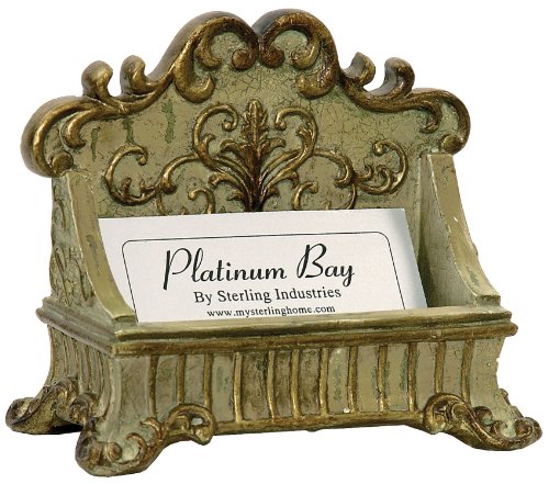 Sterling 91-3387 Lucinda Scroll Card Holder, 3 by 4-Inch, Painted Green/Gold Finish