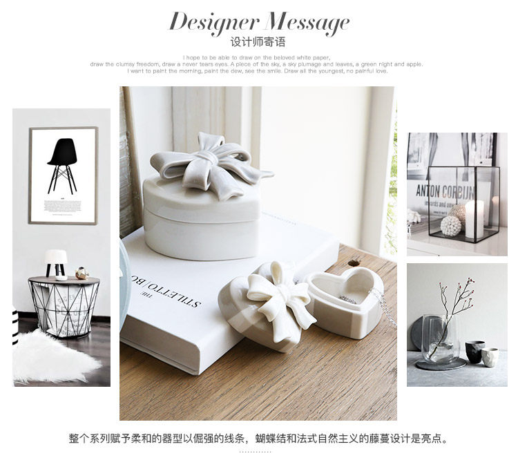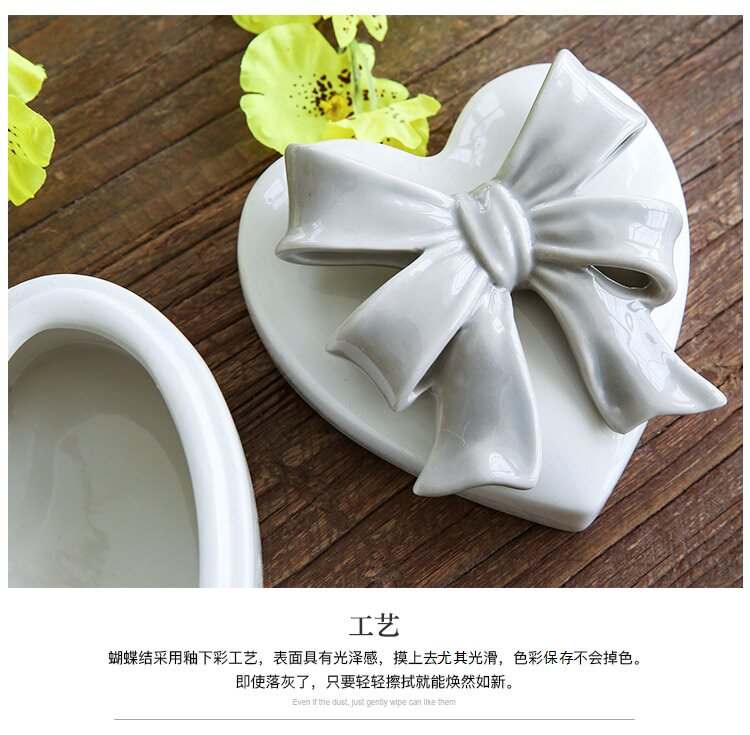 创意蝴蝶结陶瓷首饰盒家居卧室储物罐摆件收纳盒摆饰