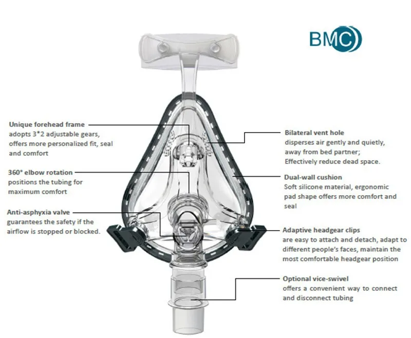 Hot sale Full Face Mask CPAP Auto CPAP BiPAP Mask With Free Headgear White S M L for Sleep Apnea OSAHS OSAS Snoring People