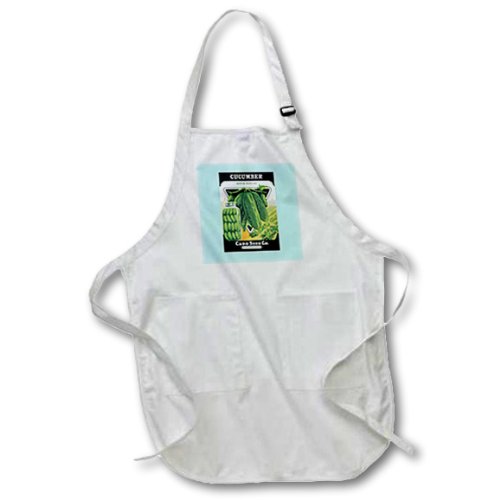 3dRose apr_169986_4 Cucumber Boston Pickling Card Seed Company-Full Length Black Apron with Pockets, 22 by 30-Inch