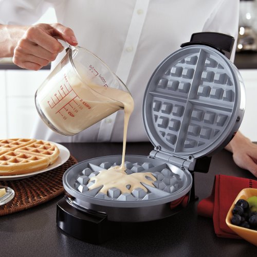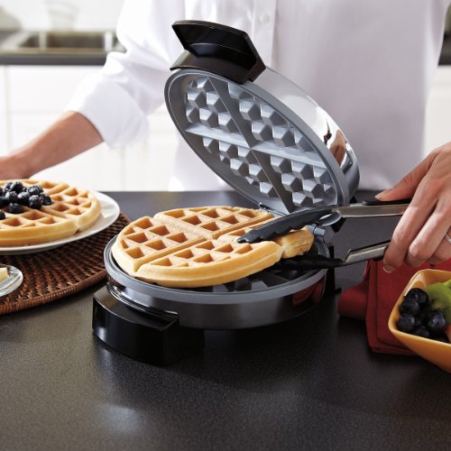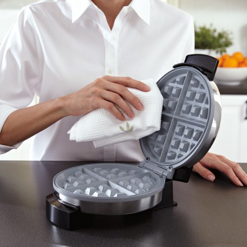 -. Feature : Unique and innovative DuraCeramic non-stick ceramic coating, 4 times more durable, won't flake or peel / Natural ceramic coating is easy to clean and is healthy as it is free of PTFE & PFOA chemicals / Cooks up to 20% faster saving time and energy / Adjustable temperature control for light and fluffy or crispy waffles / Polished Chrome housing for an elegant design
