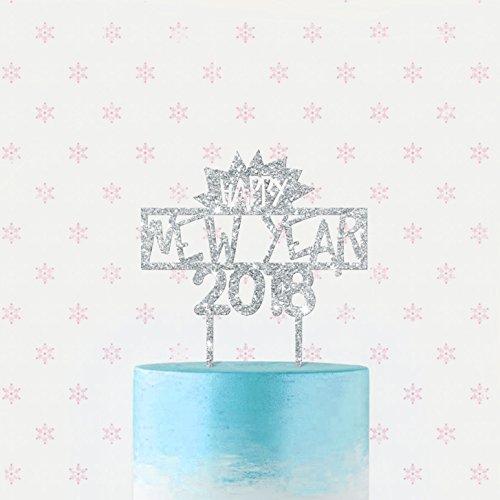 Cake Topper New Year 8x11.8 inches Cut Laser Color Glitter Silver