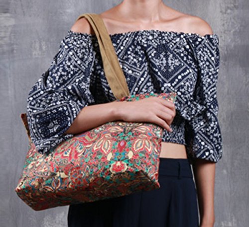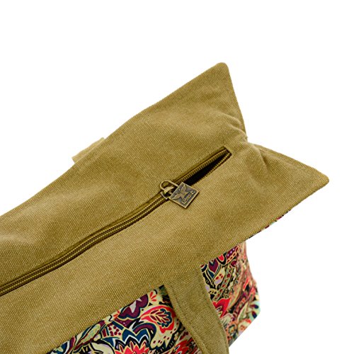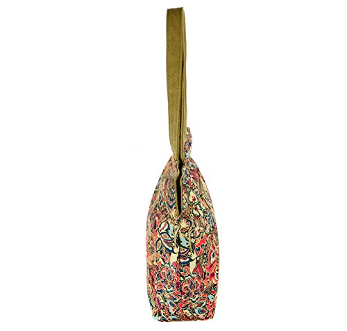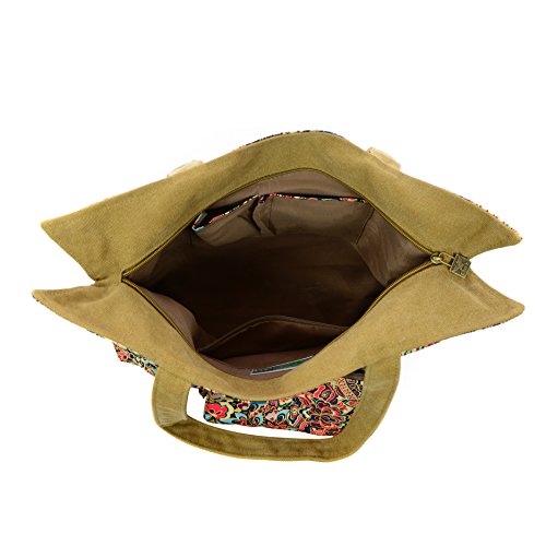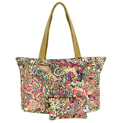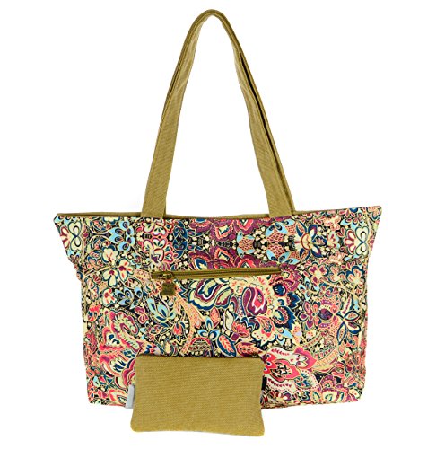 Floral Canvas Tote Bag Zipper Top with Pouch Traditional Flower Paisley by Products-Tokyo(FBA)