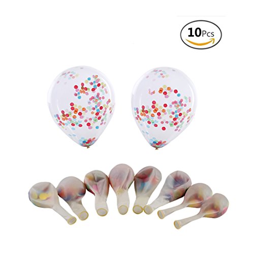 -. Feature : SIZE: 12" Balloon Filled with Confetti x 10 / USED FOR: Great Balloon for parties and wedding events / Not fill properly with Helium.Can fill with air.Shades of colorful confetti inside