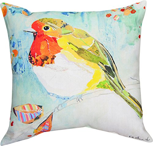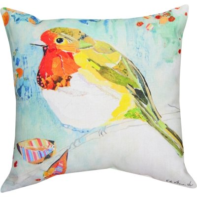 Indoor/outdoor Climaweave throw pillow with Robin On a Branch bird print