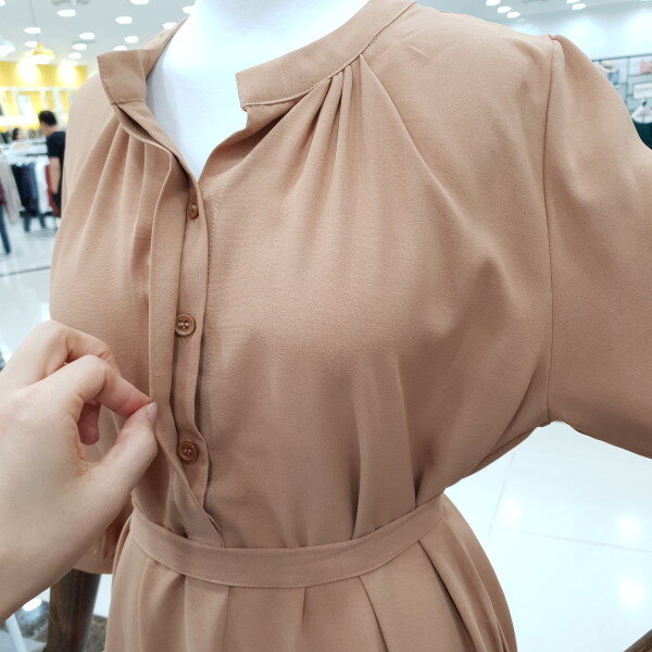 깔끔한 스타일의 여성미 물씬나는 원피스 입니다.네크라인의 셔링이 밋밋하지 않게 여성스럽게 연출되는 원피스예요.7부 소매로 지금부터 가을까지 쭉 입으셔도 되는 활용도 좋은 원피스예요.밸트로 허리라인을 잡아 허리를 강조할수 있고 더 여성스럽게 입으실수 있어요.소재도 부드럽고 가벼워 착용감도 좋아요.