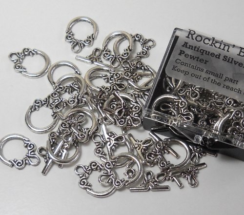 19 Complete Antiqued Silver Pewter Toggle Clasps 2 Side Design 14mm Loop, 17mm Bar, Jewelry Findings