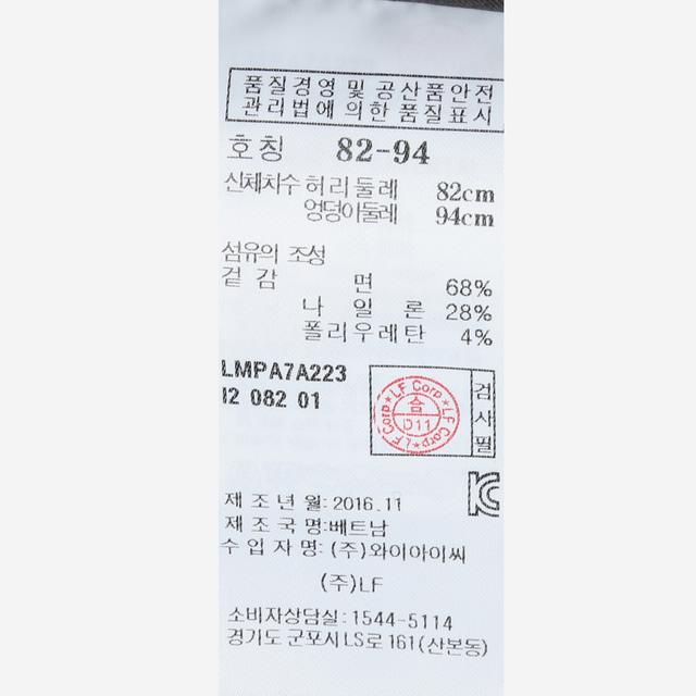 치수 082기준 허리둘레 84cm 엉덩이둘레 98cm 총길이 107cm (재는 위치에 따라 약간의 오차가 있을 수 있습니다.)