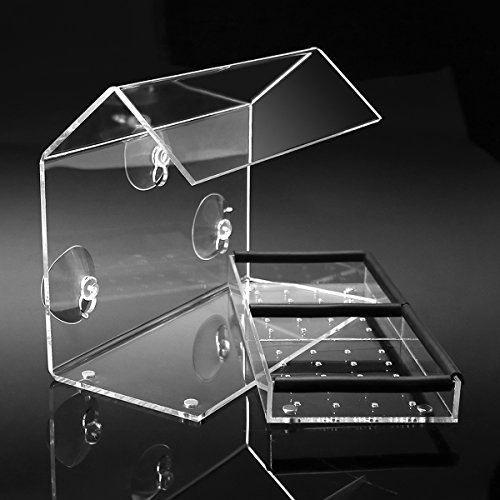 - MATERIAL - Made of high transparency, see-through 4mm acrylic,not like other normal plastic,so you can watch the beautiful markings of each bird.Makes bird watching fun and easy from the comfort of your own home while relaxing in your favorite chair, working at your desk, making dinner in the kitchen, and more.