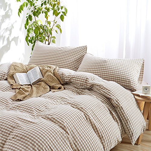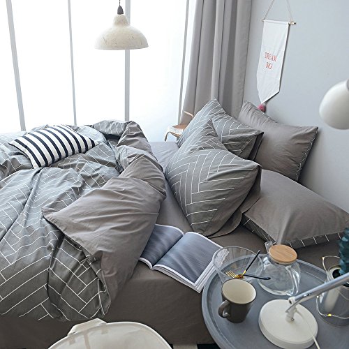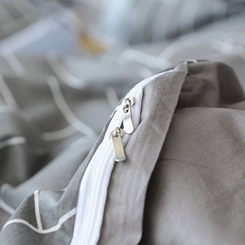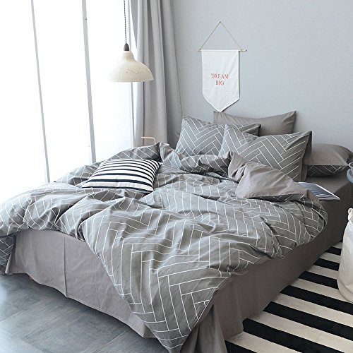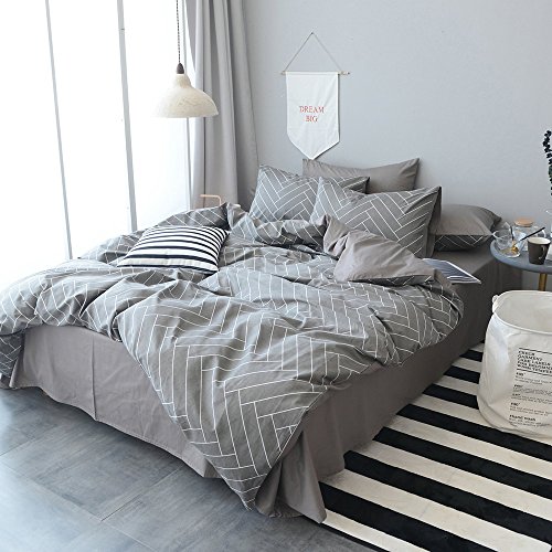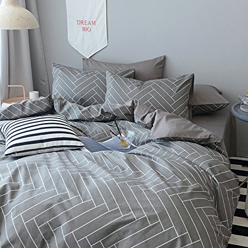 Super Soft 3 Piece King Duvet Cover Set Grey 100% Natural Cotton Striped Bedding Sets Geometric Pattern Comforter Cover For Boys Men Lightweight Breathable and Comfortable by HighBuy (No Comforter)