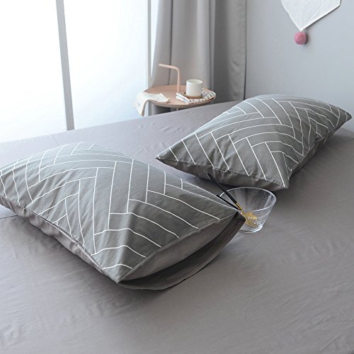 HighBuy Super Soft 3 Piece King Duvet Cover Set Grey 100% Natural Cotton Striped Bedding Sets Geometric Pattern Comforter Cover,Lightweight Breathable and Comfortable by HighBuy (Grey, King)