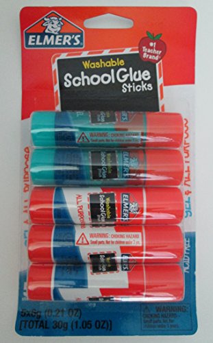 Elmer's Washable School Glue Sticks - 5 Sticks (Gel & All-purpose)