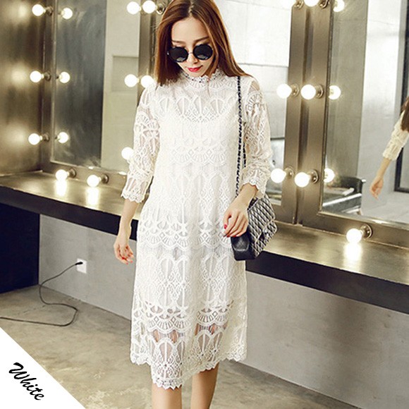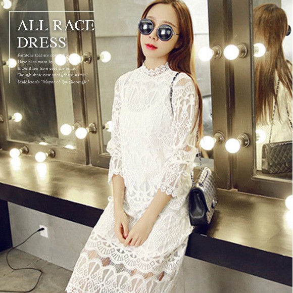 ほどよい肌見せがセクシーな総レースワンピです☆オフネックデザインで、ちょっぴりクラシカルでレトロ可愛い印象に♪♪
