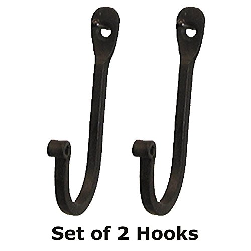 CTW 720002 Early American Single Prong Wrought Iron Hooks, Set of 2 – Rustic Curved Metal Fasteners – Decorative Colonial Wall Décor