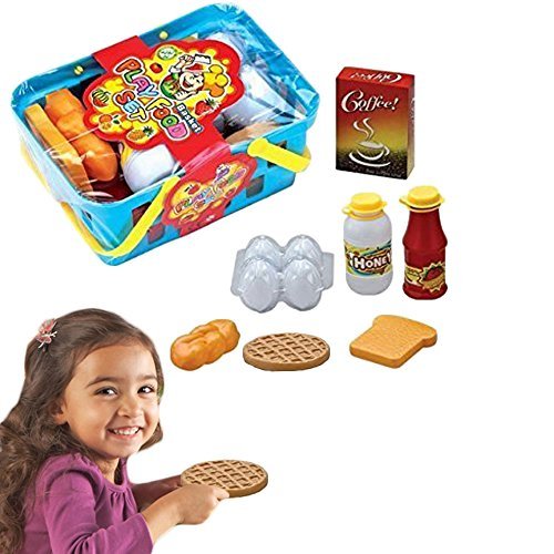 -. Title : Dazzling Toys Pretend Play Breakfast & Lunch Play Food Set with Basket for Kids - 10 Piece Set