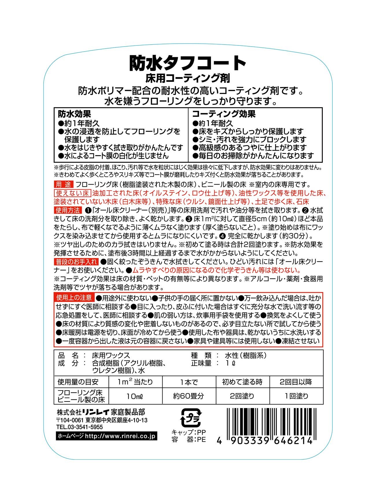 "Linlei Waterproof Tough Coat 1 L" is a floor coating agent suitable for flooring around water that protects flooring by preventing the penetration of water.