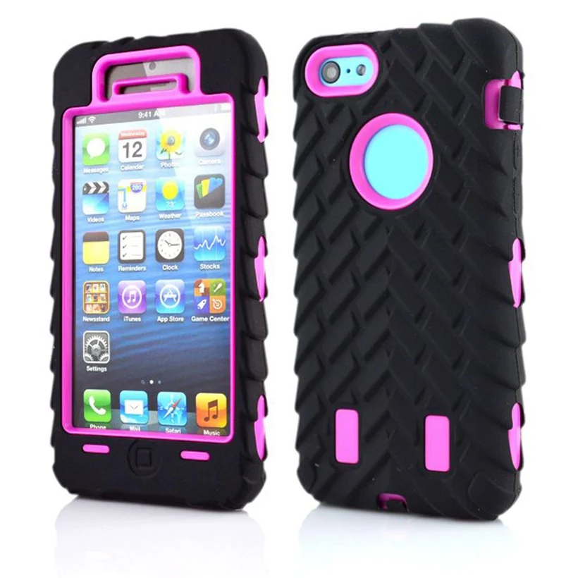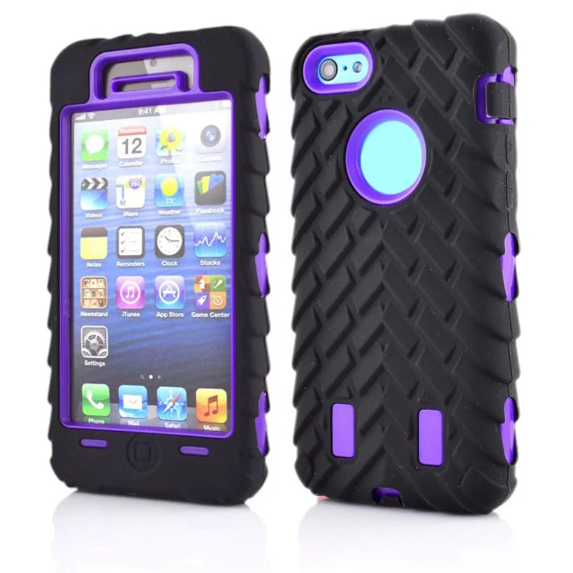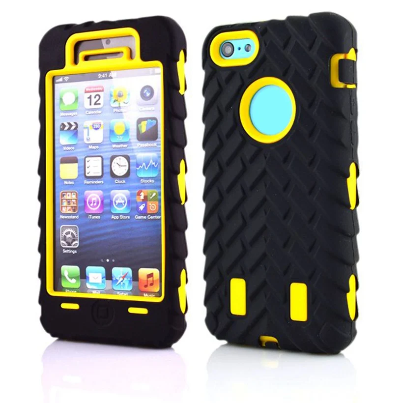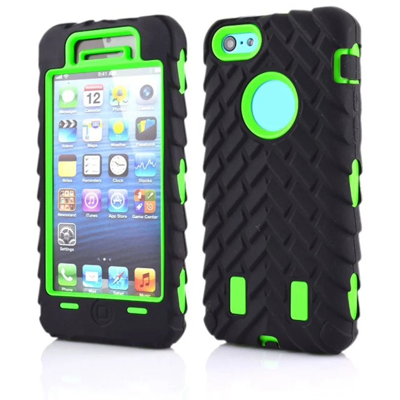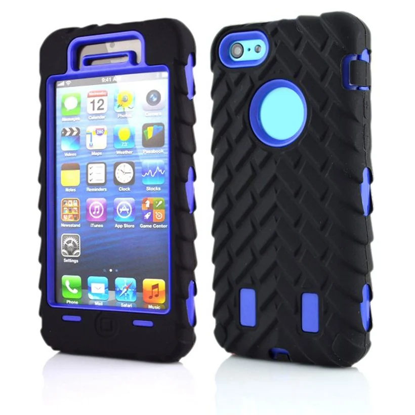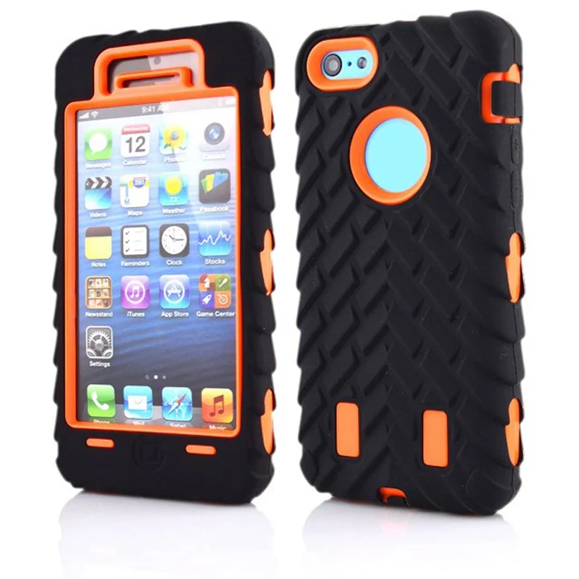 タイヤデュアル層シリコン&ハードプラスチック3で1鎧ハイブリッド保護バックケース用アップルiphone 5c電話ケース