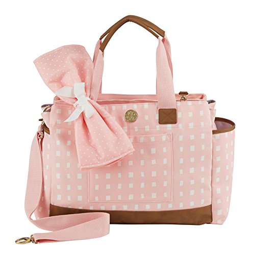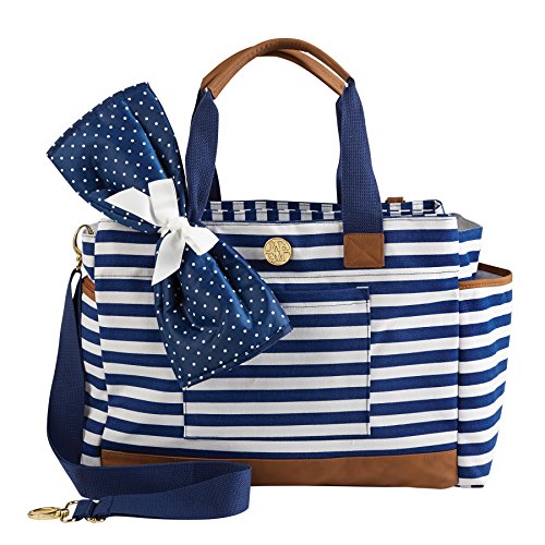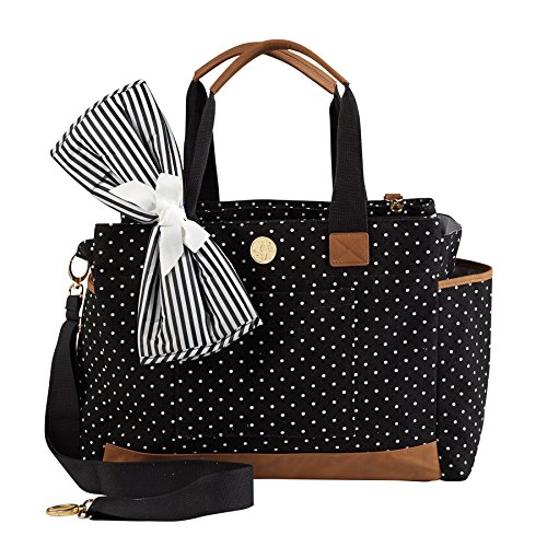 2-piece set. Large, treated cotton canvas diaper bag features roomy interior and exterior pockets, key-finder clip and coordinating, wipe-clean nylon changing pad. Has over-the-shoulder top handles and adjustable cross-body strap for versatile carrying options. Features insulated, zip-secure bottle pocket that allows for safe bottle/food transportation and keeps bottles cold for at least 4 hours. Canvas is treated with stain-resistant, water-resistant. Zip-top and magnetic snap closures.