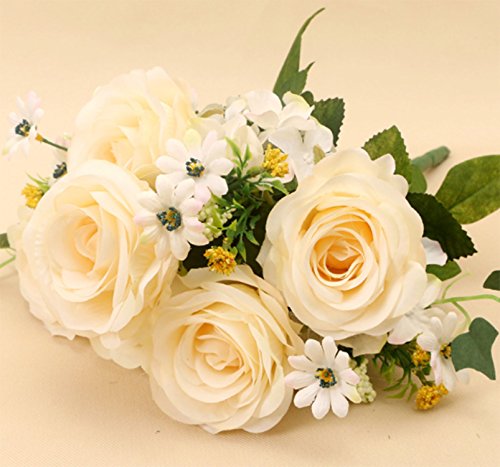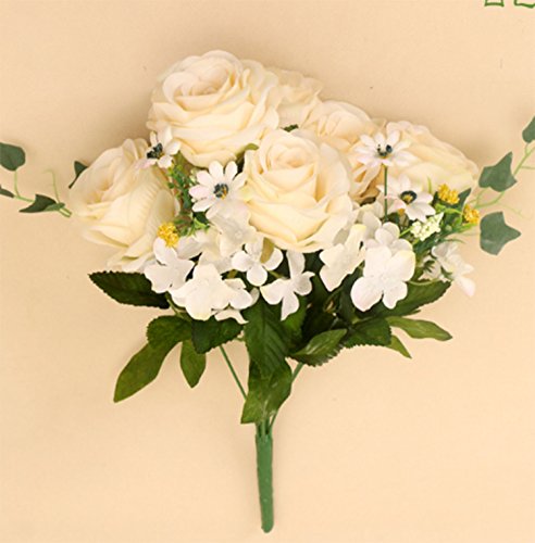 Yesier 6 Heads Plastic Artificial Rose Flowers Camellia Fake Silk Flowers Home Decorative Party Wedding (White)