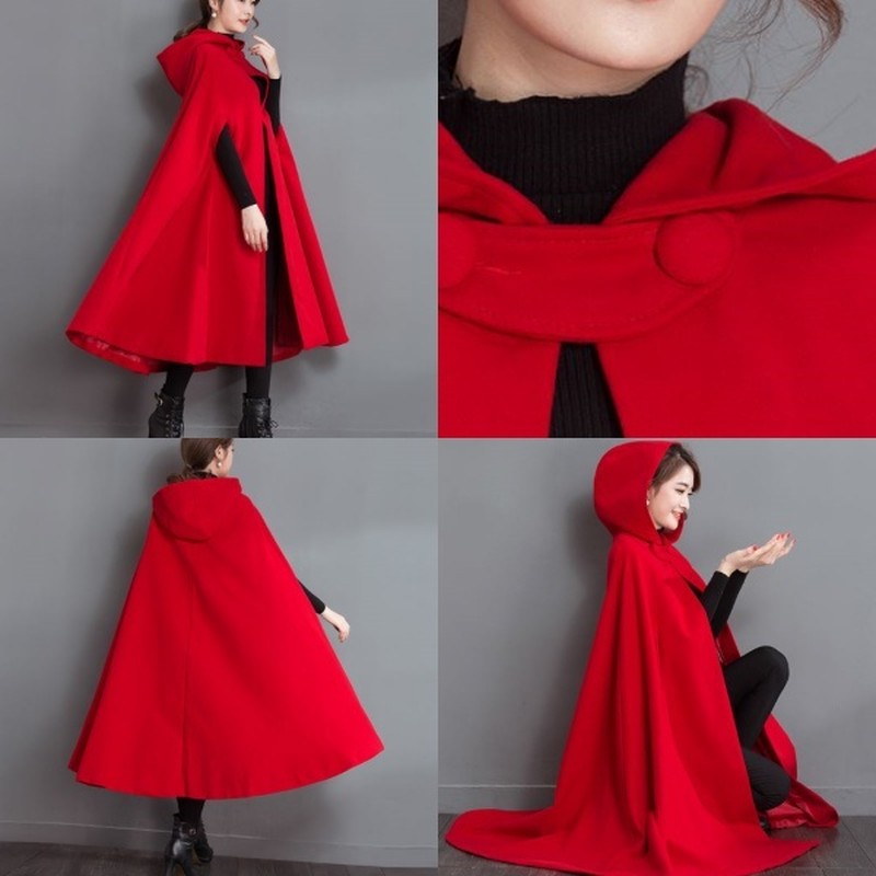 ♢ポイント♢ 真っ赤フレアーケープポンチョ。 冬にピッタリの可愛いデザインに仕上がっております♪