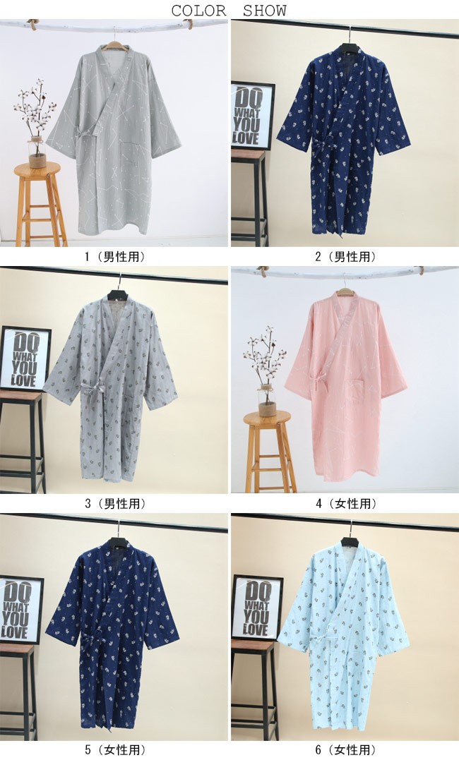 男女別販売 ルームウェア ガウン 男性用 甚平 女性用 部屋着 羽織 メンズ レディース 浴衣 和風 ナイトウェア パジャマ 寝巻き男女別販売のルームウェアが登場吸湿性・通気性に優れた綿混紡素材を厳選、ソフトで爽やかな肌触りをもたらすゆったりとしたカッティングでリラックス感満載の着心地落ち着きのあるデザインで長閑なライフスタイルを演出部屋着としてだけではなく、軽く外出する時も気軽に使えるアイテムお祭りや花火大会などの雰囲気にもピッタリ、夏の風物詩となる一枚カラー:1(男性用) 2(男性用) 3(男性用) 4(女性用) 5(女性用) 6(女性用) 7(女性用)素材 綿混紡サイズ(cm) M LM 男性用 着丈107 バスト114 肩幅58 女性用 着丈103 バスト102 肩幅53L 男性用 着丈110 バスト120 肩幅61 女性用 着丈107 バスト112 肩幅59ご注意:※サイズは平置きサイズです。素人採寸ですので、若干の誤差がございます、ご了承ください。