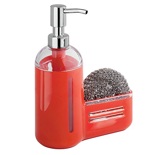 mDesign Kitchen Sink Soap Dispenser Pump and Sponge Caddy - Red/Clear