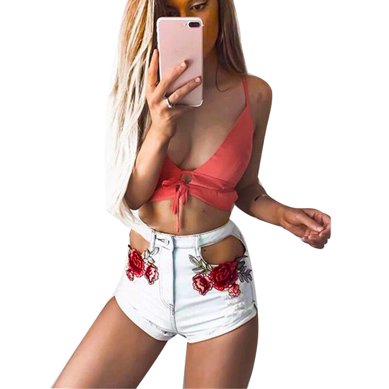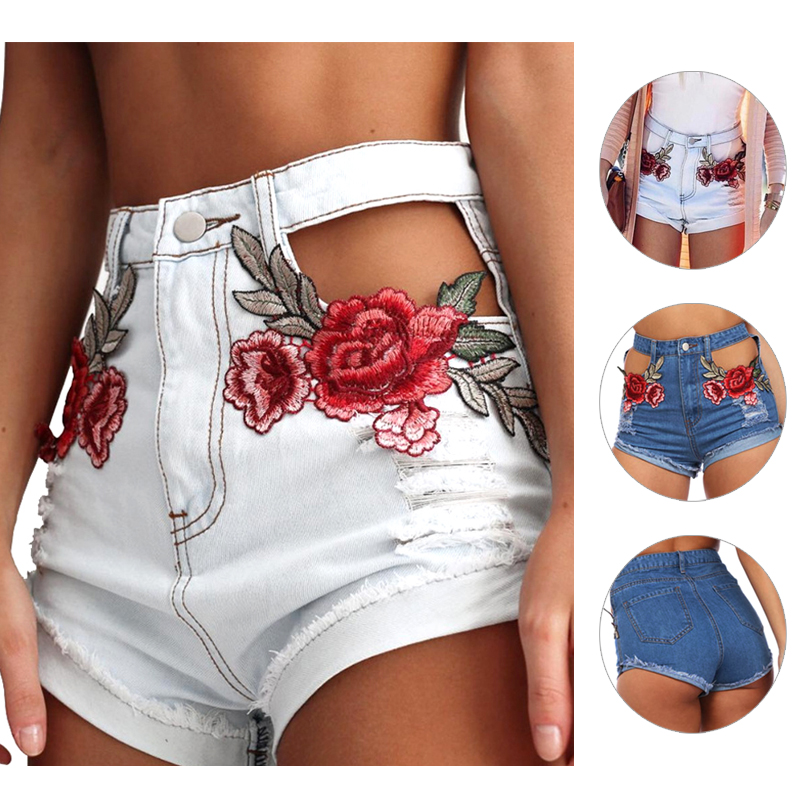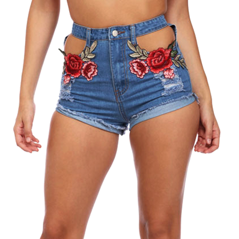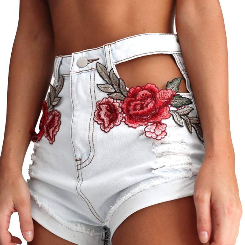 Fashion Embroidery Floral Hollow Out Jeans Denim Shorts