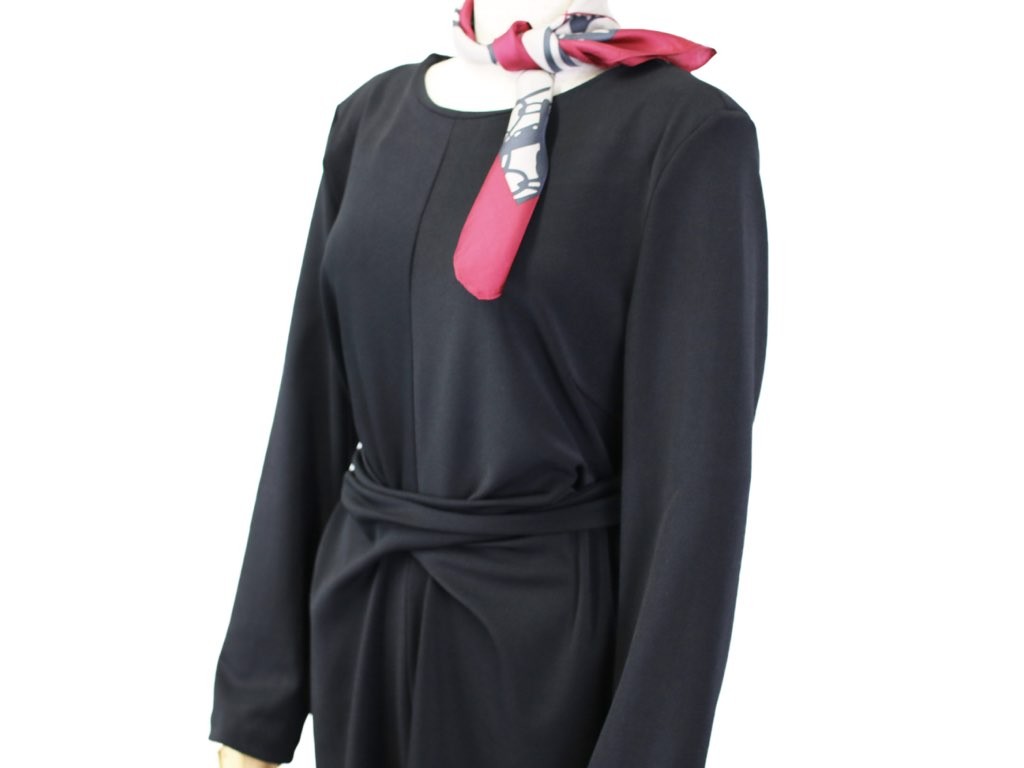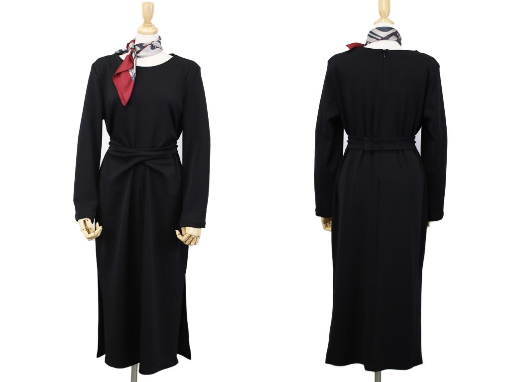シンプルながら一枚で上品になるワンピースです。腰周りのストラップで、絞って着用するとエレガントなスタイリングが可能です。このワンピースで短時間でも、上品な着こなしができます。 1.基本情報 色:1色展開(ブラック) サイズ:Free 素材:ポリエステル 製造国:Korea 2.サイズ情報 肩幅:40cm 身幅(胸断面):38cm 腕の長さ:56cm 着丈(前):110cm (サイズは計る方法に応じて±2〜3cmの誤差があります。ご了承お願い致します) モデル着用サイズ:F ※着用モデル(163cm、体重47kg、足のサイズ24.5cm) 3.その他の情報 厚み:中間 透け感:なし 伸縮性:なし 裏地:あり 洗濯方法:ドライ(クリーニング) [注意事項] お取り寄せ商品は、海外より仕入れるため納品まで約10日前後いただきます。 また店舗でも販売しており、在庫切れになる場合もございます。ご了承お願い致します。