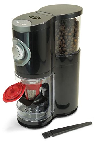 Grind beans at the peak of freshness with the 2-in-1 Automatic Single Serve Burr Grinder. This grinder has a compact, elegant design and works at a low RPM to reduce heat build up.