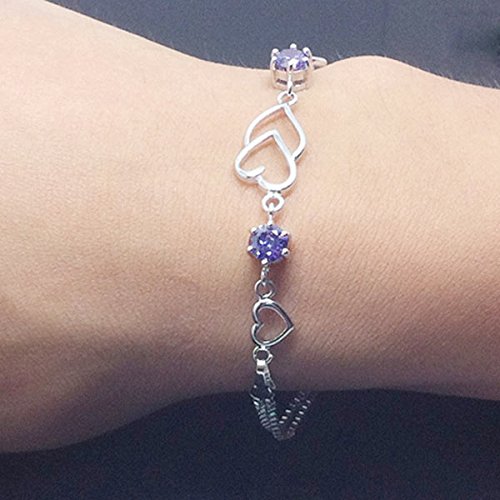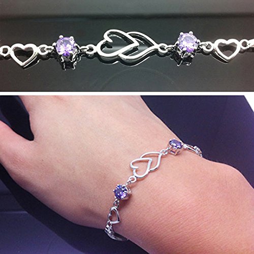 - Title : Chic 925 Silver Double Heart Love Purple Crystal Bracelet Chain Women Girl Gift