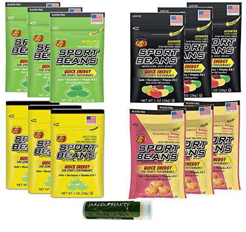 -. Binding : Health and Beauty -. Brand : Jelly Belly -. EAN : 0818992023224 -. Feature : A FITNESS SET TO NOURISH you inside and out! Regenerate with Jelly Belly Sport Beans and protect and nourish your lips with Jarosa's Bee Organic Lip Balm (Peppermint Flavor) / A total of 12 Resealable Bags of Sport Beans (Assorted, Grean Apple, Juicy Pear & Strawberry Banana Flavors) Scientifically Formulated To Maximize Sports Performance - Lightweight , Compact & Convenient. 3 Packs of each flavor. Size: 1 oz each pack. Sport's Beans are GLUTEN FREE, Peanut Free & Kosher / DOES YOUR WORKOUT NEED A KICK? Find It With 25 Grams of Carbohydrates Per Bag To Fuel Your Body During Intense Activity - A Balanced Supply of Electrolytes (Sodium & Potassium) Vital For Maintaining Fluid Balance / VITAMINS B1 (Thiamin), B2 (Riboflavin), B3 (Niacin) To Help Burn Carbohydrates & Fat - Vitamin C To Help Protect Muscles & Cells Against Oxidative Damage - Naturally Sweetened, Colors From Natural Sources & Made with 100% Natural Flavors & Real Fruit Juices / FINISH WITH THE WORLD'S BEST LIP BALM, Peppermint Flavor, 100% natural and USDA certified organic by Oregon Tilth for your peace of mind. Great for protecting lips and highly effective as a moisturizer. Use for dry, chapped lips, to moisturize before applying lipstick or as a gloss for over lip stain. Great for sensitive lips. -. IsAdultProduct : 0 -. Label : Jarosa, Inc -. Manufacturer : Jarosa, Inc -. MPN : JG -. PackageQuantity : 13 -. PartNumber : JG -. ProductGroup : Health and Beauty -. ProductTypeName : HEALTH_PERSONAL_CARE -. Publisher : Jarosa, Inc -. Studio : Jarosa, Inc -. Title : SPORT BEANS Jelly Belly Variety 1 oz (28g) - Assorted, Green Apple, Juicy Pear & Strawberry Banana - Pack of 12 (3 Packs of Each Flavor) Naturally Flavored with a Jarosa Peppermint Lip Balm (Boxed) -. UPC : 818992023224