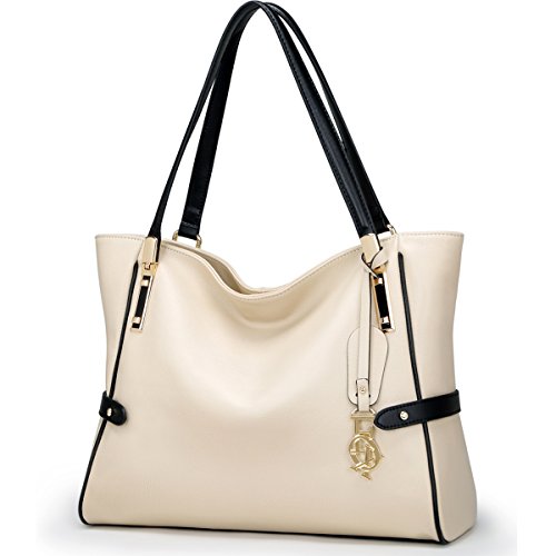 -. Feature : GENUINE LEATHER - Made of genuine cowhide leather, enhancing softness and comfort. Polyester silk lining and premium hardware can stay in good condition even if used for a long time. / CONCISE DESIGN - Concise design with the exquisite hardware pendant, makes yourself stand out with this leather shoulder bag. / DIMENSIONS - Measures about 13.8" L x 5.3" W x 10.6" H, handle about 8.3" long. Easily hold you books, iPad, phone, umbrella, wallet, cosmetics and other stuff. / STRUCTURE - Comes with 2 large capacity main compartments, 1 zipper compartment, 1 side zipper pocket, 1 phone pocket, 1 card pocket and 1 back zipper pocket, meeting your daily needs. / IDEAL FOR ANY OCCASION - Perfect for dating, office, shopping, travel, party, banquet or special events. Also can be an ideal gift for yourself or for that someone special.