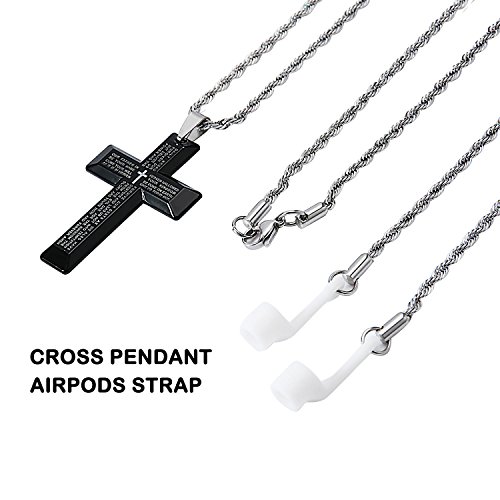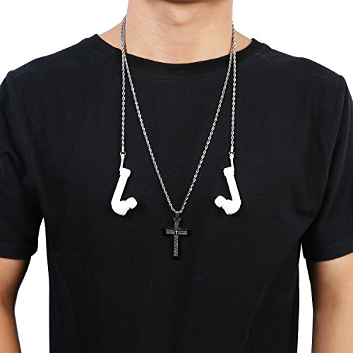 Never Lose Your Airpods. *Ideal for your iPhone AirPods, Fastens AirPods on each mount to ensure stability and security. Compact, lightweight, and extremely durable.Never lose your Airpods. Fashionable Cross Pendant Necklace *Not only suit for citizens of religions to pray, but also perfect for jewelry enthusiast to collect. Just wear it, and show your fashionable charm. Removable Design *Two AirPods straps can be removed easily from the necklace. You can install them on your own necklace or do some DIY designs to meet your personal preferences. Environment-Friendly *Made of premium stainless steel. Completely used ecofriendly silica gel material to make, this item is next-generation green environment protection product. It's time to say Goodbye to the low and light silicon Airpods strap.