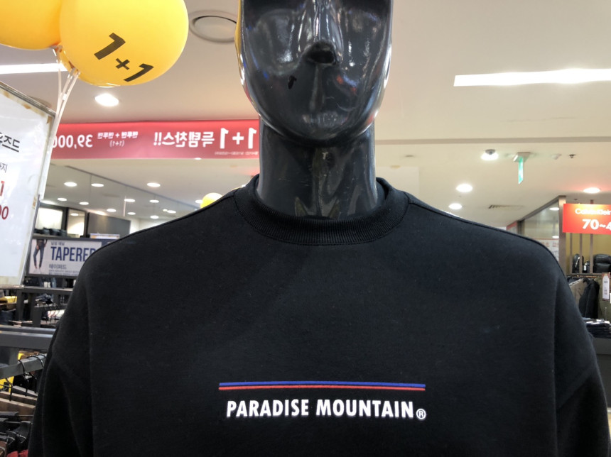 가슴 부분에 들어가는 파라다이스마운틴 문구 프린트가