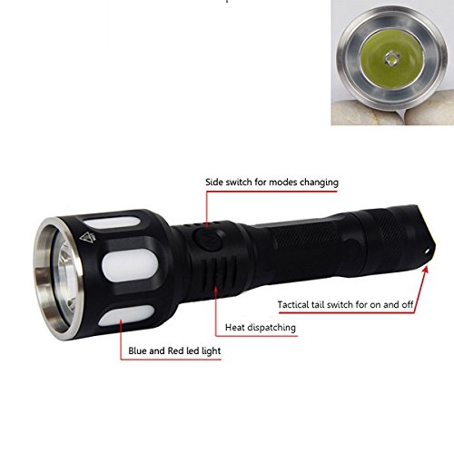 - Uses one Cree XM-L2 cool white led, max 900 lumens, 3 blue leds and 3 red leds for special use.