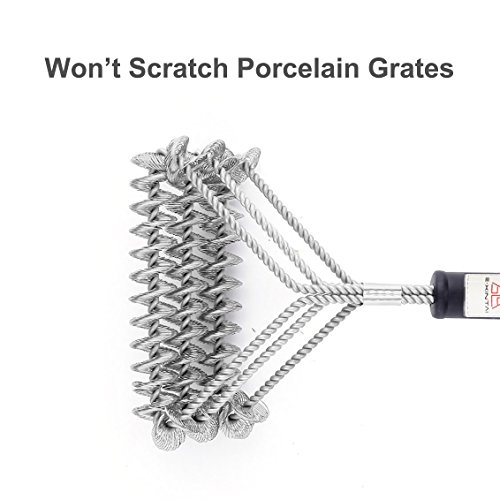 - HARD MATERIAL: brush is made of high quality stainless steel and hard plastic, stainless steel material and helix design make them very ideal and safe for grill cleaning, 3 brushes in 1 design, much more efficient to clean your grill