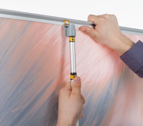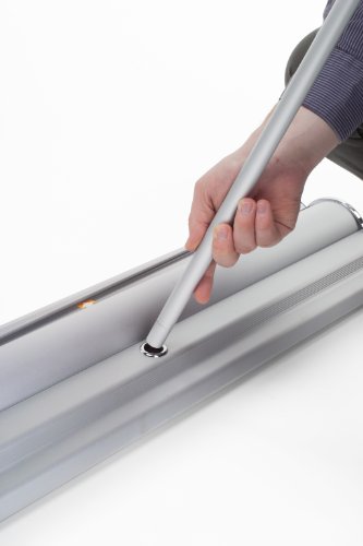 Displays2go Portable Banner Stand with Roll-Up Design for 40.5 Inches x 89.5 Inches Graphics(Not Included), Height Adjustable Telescoping Pole, Includes Carrying Bag-Aluminum (JBNRCN39VC)