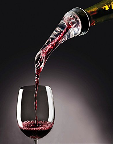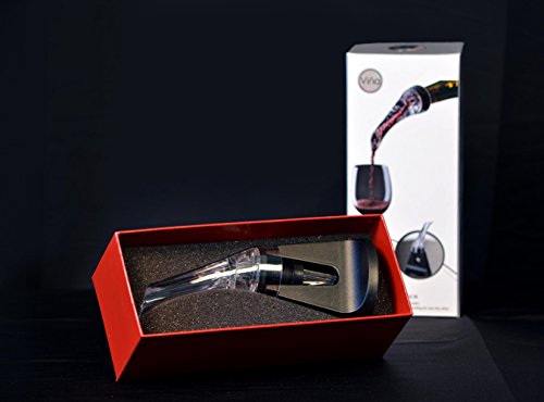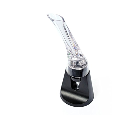SKU:WinePourer003BK Features: ?Easily and quickly to release wine aromas and flavors by contacting between wine and air ?No need long time waiting for better wine taste in 0.1s ?Creative appearance makes pouring easy and no spill ?Portable and practical ?Material: Acrylic Silicone ?Length: 15.5cm/6.10"(approx) ?Base holder height: 8.5cm/3.34"(approx) ?Quantity: 1X ?Black Clear ?Perfect Christmas Thanksgiving Wedding Gift Package Content: ? 1 x Portable Creative Wine Aerating Pourer Decanter ?1 x Base Holder 0