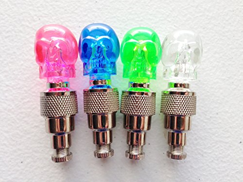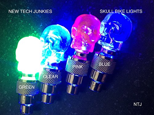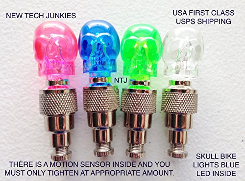 NTJ (1 Pair) Skull Head Face Led Motion Activated Bike Bicycle Wheel Valve Stem Cap Tire Light