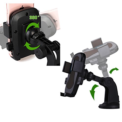 TKONG Car Mount Phone Holder Suction on Windshield 360 Degrees Rotation Freely Adjustable for iphone 7 Plus and Universal Phone (Black)