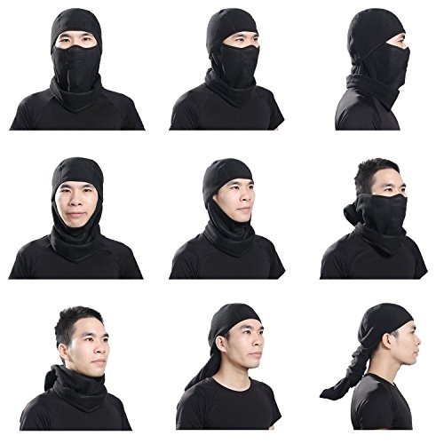 Studio : Zonemay Publisher : Zonemay Binding : Apparel Product Description We use PREMIUM HIGH-TECH POLYESTER FIBERS to Design High-Quality Motorcycle Balaclavas that reaches new standards for Absorbency, Wicking, Durability, Abrasion Resistance and WIND PROTECTION. Why You'll Love Your Versatile Balaclava : - Gives cold, wind and sun protection while skiing, motorcycling, running, cycling, trekking, fishing, hunting, hiking and other outdoor activities. - Please note: this product provides natural and inherent UV protection because it covers the skin and obscures it from the sun's damaging rays. - Extremely breathable. Wrinkle free. - Has a more natural and smoother fit than regular balaclavas. - You can easily fit it on - lightweight - stays comfortable on your head - Allergy free, no headache, eco-friendly and odorless - this balaclava is made of new developed polyester fiber that pulls moisture away from your skin - One size fits most. Designed for men and women - Machine washable and dryable NEW DESIGN: - You can wear it as a closed or open balaclava, neck gaiter or saharan style. Can be worn on its own or under any kind of helmet or hat. - Brings two layers of fabric over your ears giving them superior protection in cold and windy environment.